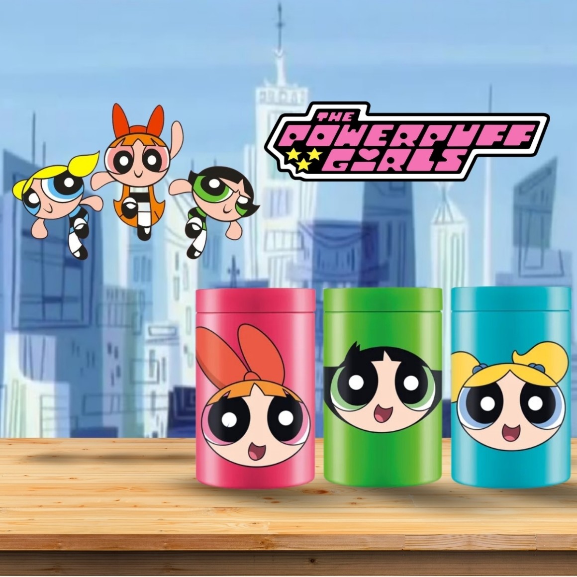 Design Temático: Cada pote apresenta uma das Meninas Superpoderosas, trazendo um toque lúdico e personalizado à sua organização.