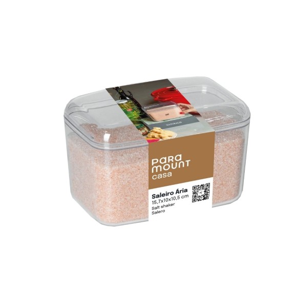 O Saleiro Com Tampa Ária Cristal da Paramount é perfeito para armazenar e manter o sal sempre ao alcance com estilo e praticidade. Feito em poliestireno transparente, seu design moderno e funcional facilita a visualização do conteúdo, enquanto a tampa protege contra umidade e contaminação, preservando a qualidade do sal por mais tempo. Com dimensões de 11x16x10 cm, ele é ideal para o uso diário na cozinha.