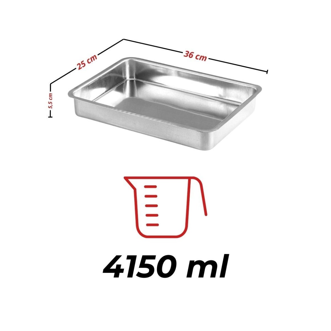 A Assadeira Retangular Alta N.02 é a solução perfeita para quem precisa de versatilidade e capacidade na cozinha. Com um volume generoso de 4,150 litros e dimensões de 36x25x5,5 cm, esta assadeira em alumínio é ideal para preparar uma ampla variedade de pratos, desde lasanhas e gratinados até bolos e assados para a família toda.
