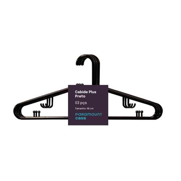 Kit com 3 Cabides Plus 46cm Preto Paramount