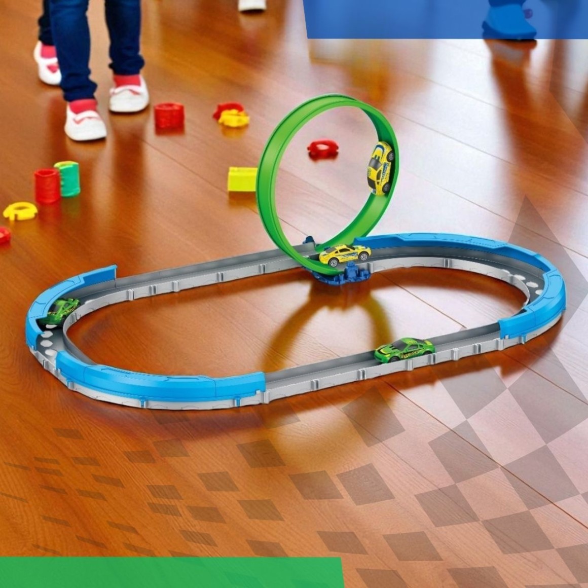 Design Interativo: A pista pode ser montada facilmente, e o looping cria um elemento visual que prende a atenção, tornando a brincadeira ainda mais envolvente.