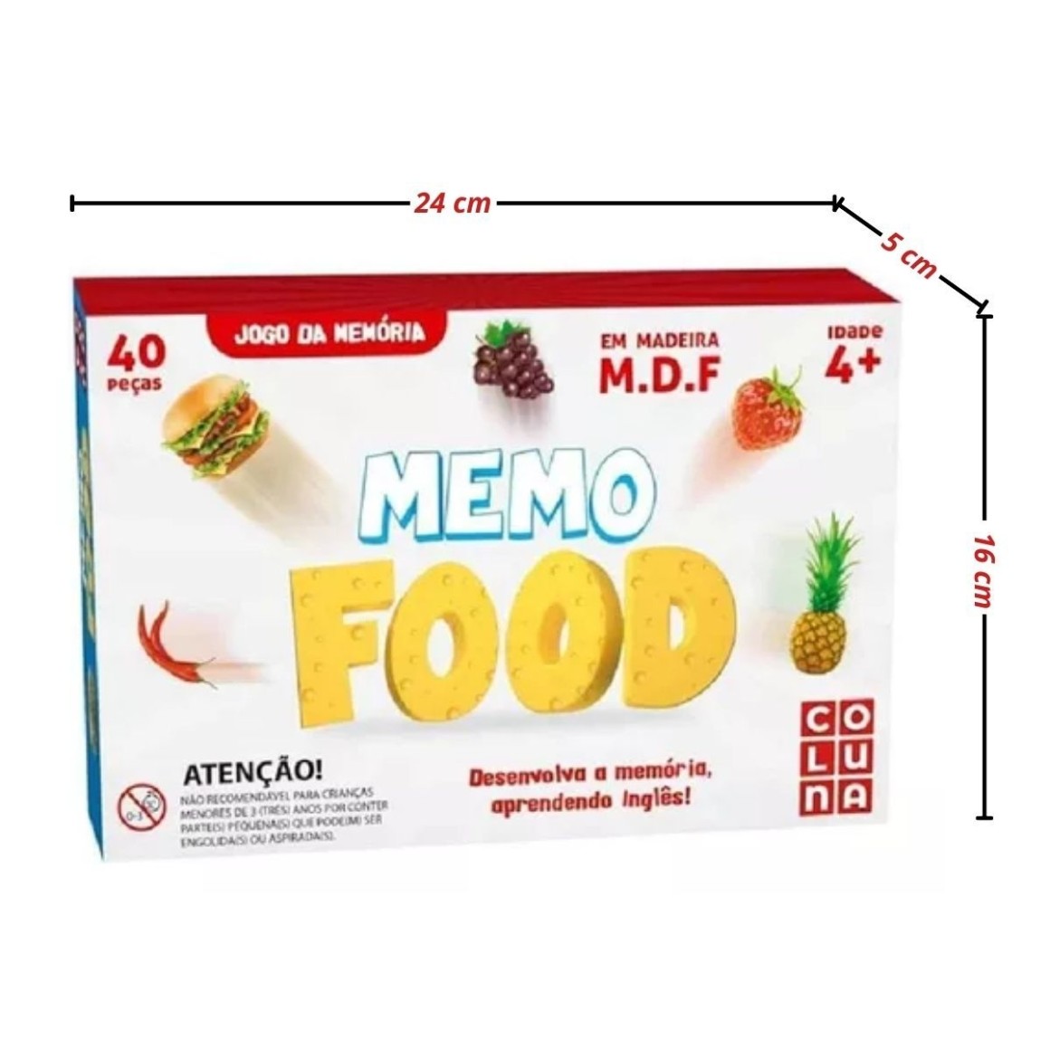 - Peças: 40 peças com ilustrações de comidinhas variadas.